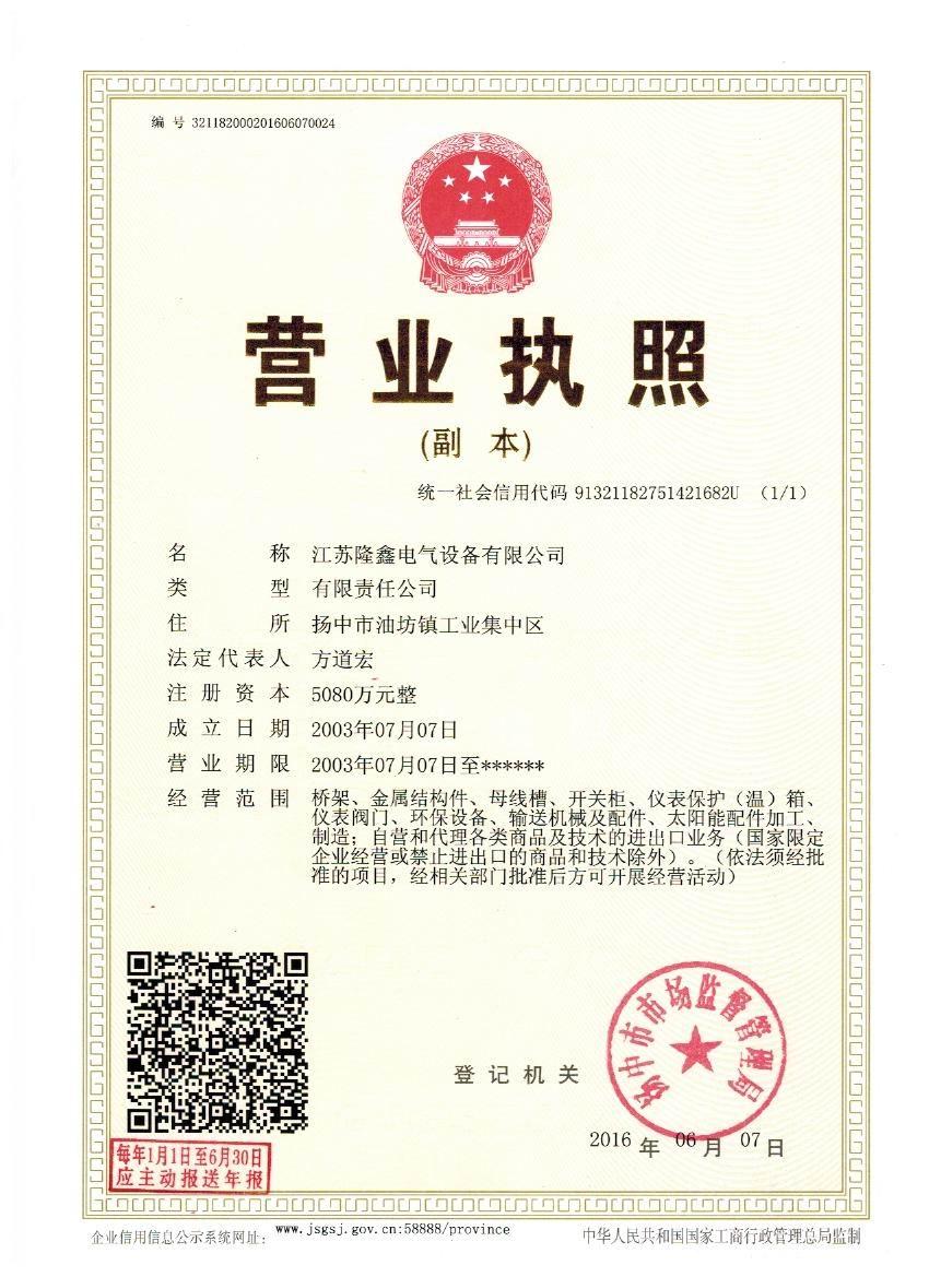 江蘇隆鑫電氣設(shè)備有限公司(原揚(yáng)中市隆鑫電器設(shè)備有限公司)位于風(fēng)景秀麗的江南古城 ---- 鎮(zhèn)江東部揚(yáng)子江畔,水陸交通便利。 本公司是中石化網(wǎng)絡(luò)成員企業(yè),是揚(yáng)中橋架企業(yè),工業(yè)管道閥門(mén)、儀表管配件、母線(xiàn)槽、匯線(xiàn)橋架、玻璃鋼制品的專(zhuān)業(yè)生產(chǎn)廠家。 我公司以經(jīng)營(yíng)以管理為保證、以科技進(jìn)步為動(dòng)力,使產(chǎn)品的市場(chǎng)占有率不斷提高,公司正持續(xù)、穩(wěn)步、健康地向前發(fā)展,秉循“服務(wù)用戶(hù)、奉獻(xiàn)社會(huì)”的經(jīng)營(yíng)觀念,本公司生產(chǎn)的儀表管件及閥門(mén)系列產(chǎn)品、母線(xiàn)槽、電纜橋架幾乎覆蓋全國(guó)31個(gè)省、市、自治區(qū)的化工、冶金、交通、輕紡、建筑、港口...